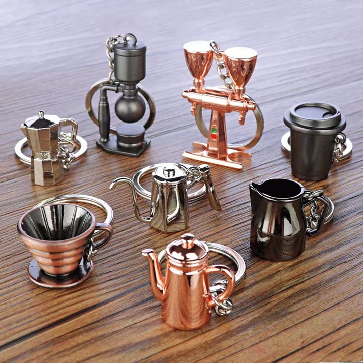 Creative Mini 3d Coffee Spoon Cup Pot da cucina portachiavi in metallo regali promozionali serie portachiavi strumento caffè